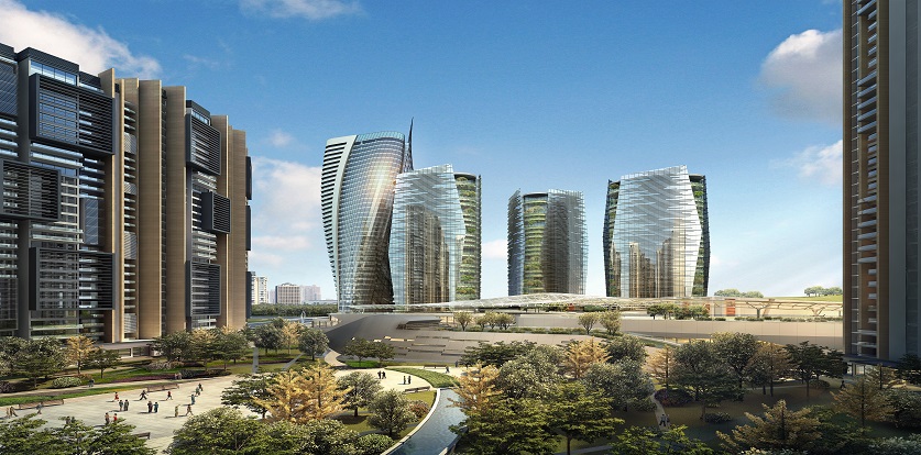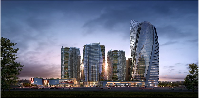 本案以創(chuàng)造區(qū)域地標(biāo)意象為宗旨,從生態(tài)城的立意出發(fā),充分體現(xiàn)了可持續(xù)發(fā)展的設(shè)計理念。一方面,運用富有創(chuàng)造性的手法,打破了方正平直的布局和造型,曲線的運用帶來了流暢、自然、有機(jī)而富有變化的外部形象和內(nèi)部空間;另一方面,在設(shè)計中恰當(dāng)?shù)剡\用了立體綠化、自然通風(fēng)以及水循環(huán)、新能源等節(jié)能技術(shù);內(nèi)在理念與外在氣質(zhì)形象的和諧統(tǒng)一,營造出極具現(xiàn)代感的、生機(jī)勃勃的城市建筑群。