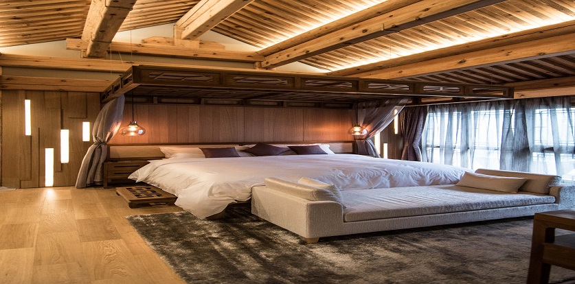四合院精品酒店室內(nèi)設(shè)計項目位于北京紫禁城以東北方向。項目采用傳統(tǒng)中國建筑四合院概念,由圍繞著一個中庭的四個有著不同獨立功能的區(qū)域構(gòu)成。這四個區(qū)域包括一個起居室,一間餐廳,主臥和標(biāo)準客房?;▓@對整體視覺效果和設(shè)計過程十分重要。通過運用玻璃墻,從四個區(qū)域都可以直接看到花園。這四個區(qū)域雖然功能獨立,但通過花園相互連通。